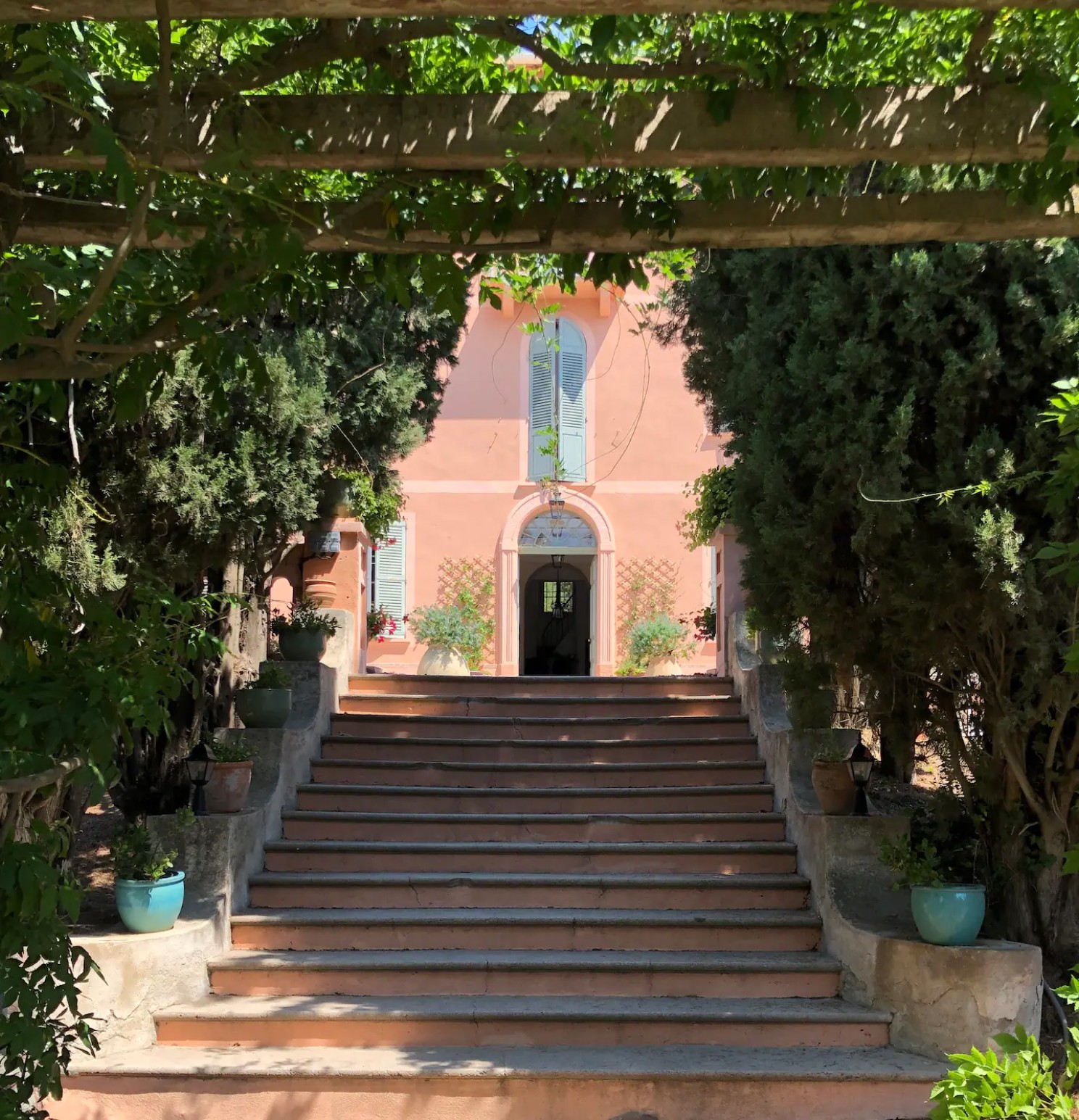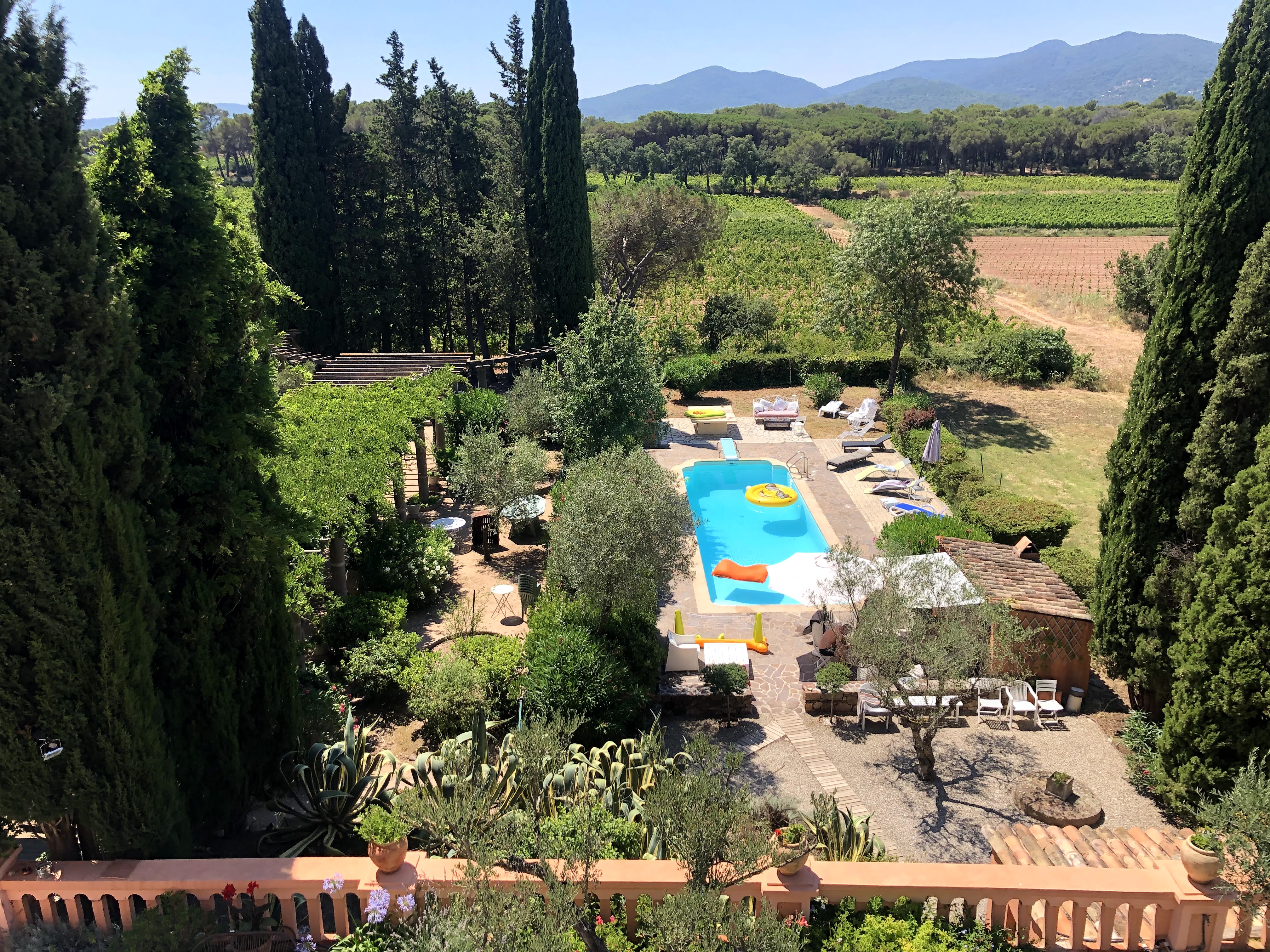 Ce jardin de 2 hectares étant situé entre vignoble et pinède, il est des plus calme et reposant.